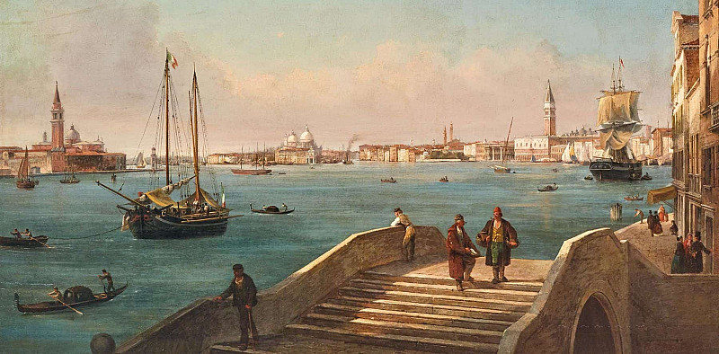 Luigi Querena – Venice the Piazzetta in the moonlight