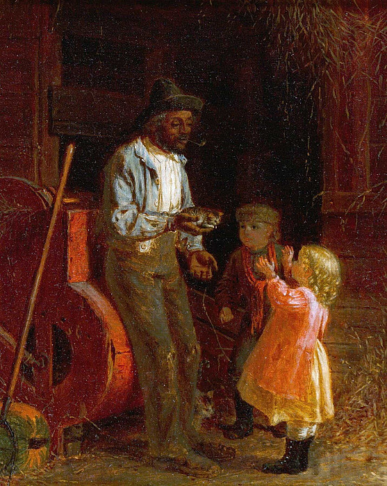 Es lassen sich auch soziale Untertöne erkennen. Die unterschiedlichen Hautfarben des Mannes und der Kinder werfen Fragen nach der sozialen Hierarchie und den Beziehungen zwischen den verschiedenen Bevölkerungsgruppen auf. Die Szene könnte als ein Ausdruck von Toleranz, Gemeinschaft oder als eine Reflexion über die gesellschaftlichen Strukturen der damaligen Zeit interpretiert werden.
