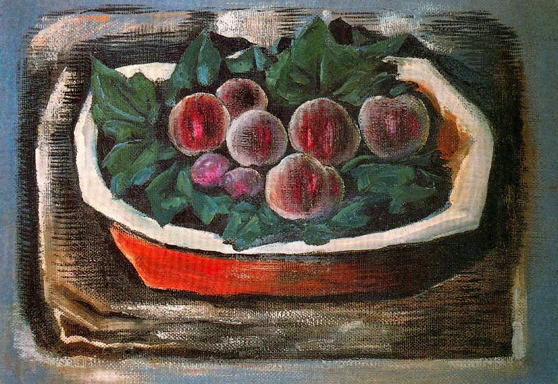 Vielleicht ist ein Gemälde einer Frau in einem schwarzen Kleid mit weißem Rüschenkragen und einem geblümten Hut, die auf einer Bank vor einem Baum sitzt.