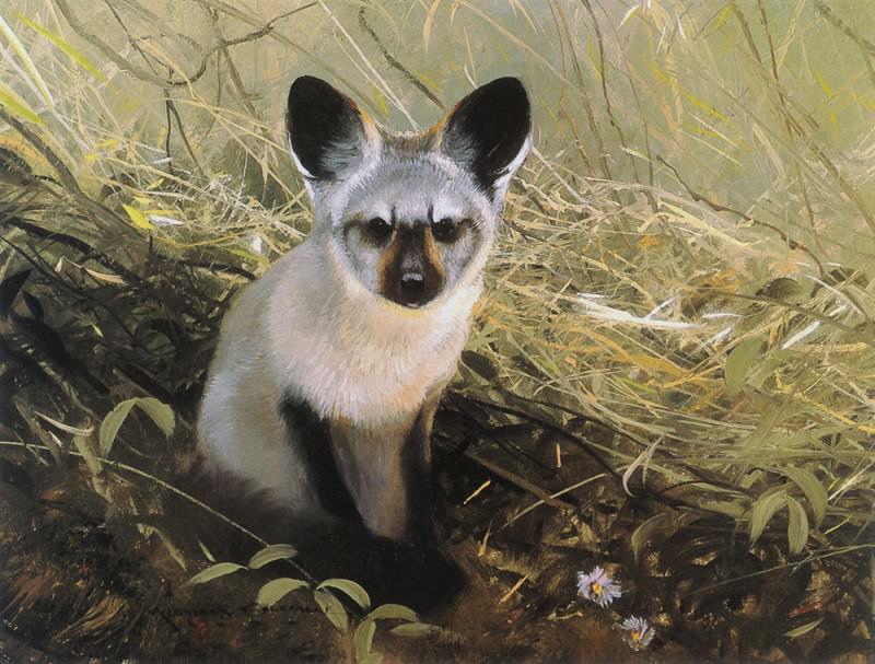 Vielleicht ist ein Gemälde eines amerikanischen Ureinwohners, der auf einem Feld mit einem Lagerfeuer vor einer Reihe von Tipis steht, mit.