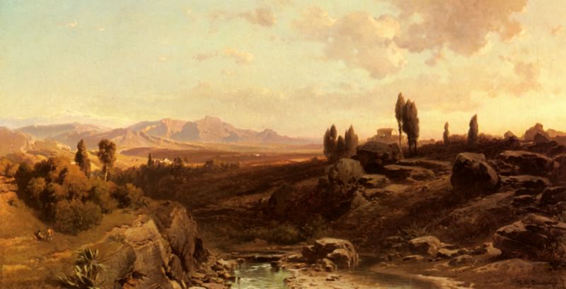 An Extensive River Landscape Fritz (Friedrich) Bamberger